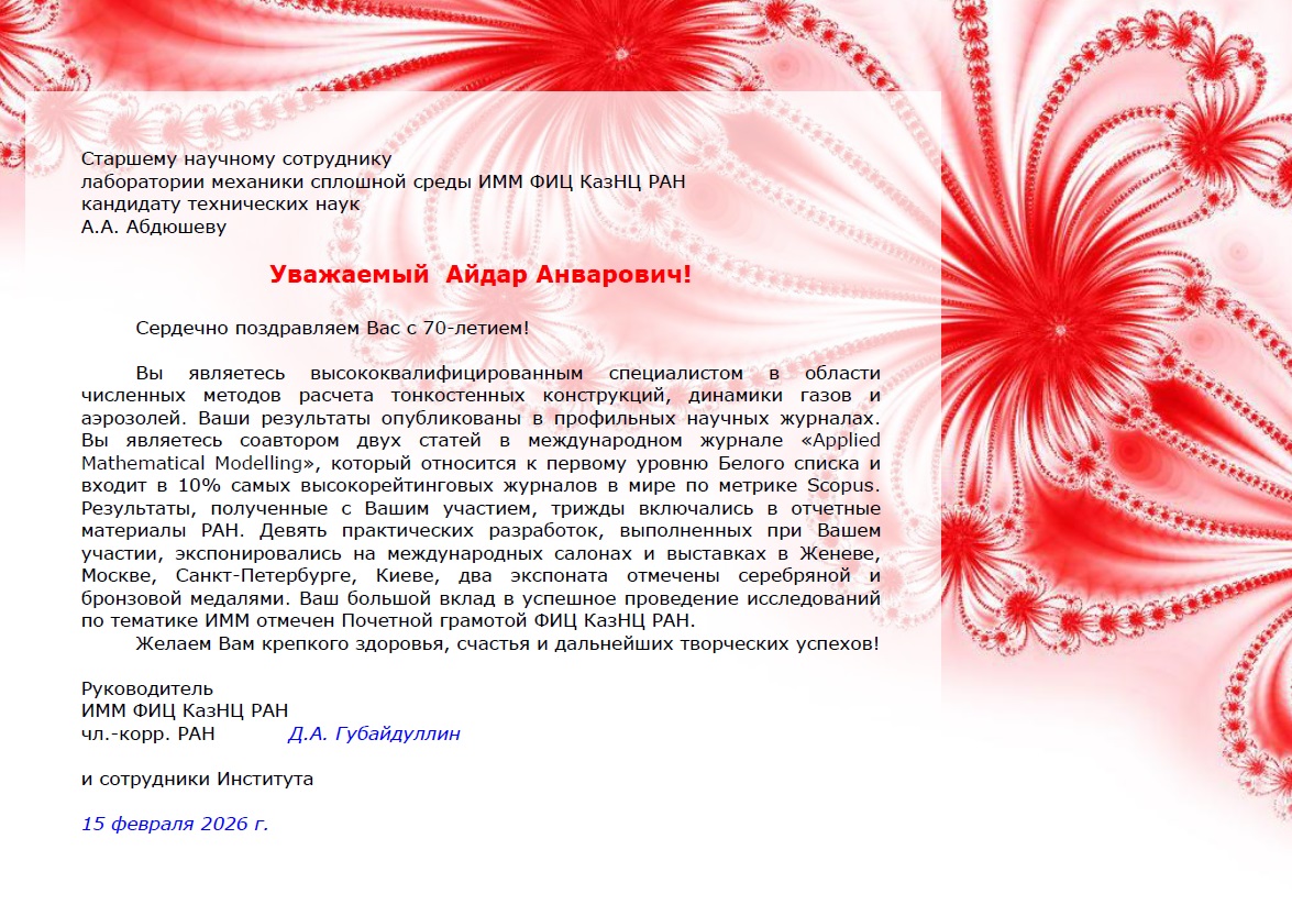 12 и 13 февраля 2026 г. состоялись заседания секции "Механика и машиностроение" Итоговой научной конференции ФИЦ КазНЦ РАН 2025 года.
